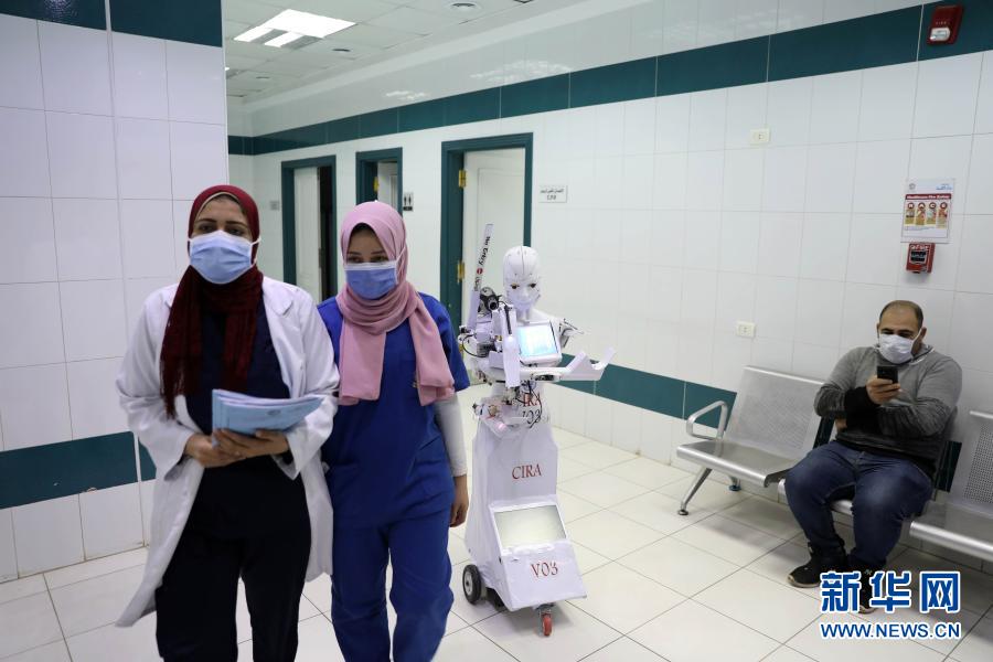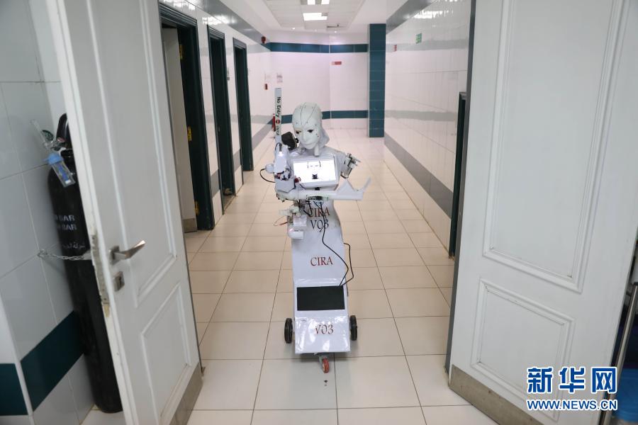 12月3日,Cira 03机器人在埃及坦塔的一所医院内测试运行。