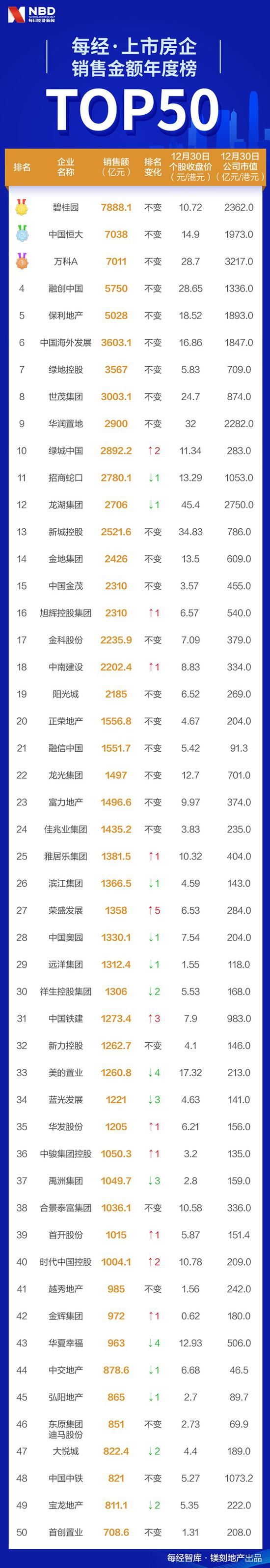 原标题:每日经济新闻发布上市房企销售金额年度榜、重点城市土地出让榜单