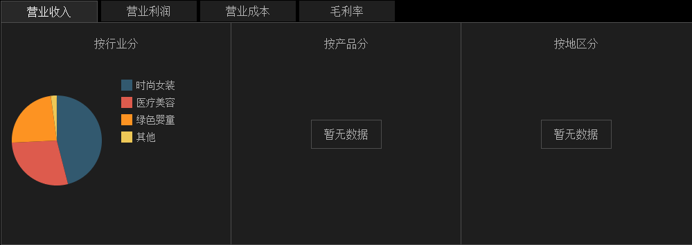 朗姿股份方面称,公司主要业务板块分别是时尚女装、医疗美容和绿色婴童,其中时尚女装仍为第一大业务板块,同时医疗美容增长速度较快。